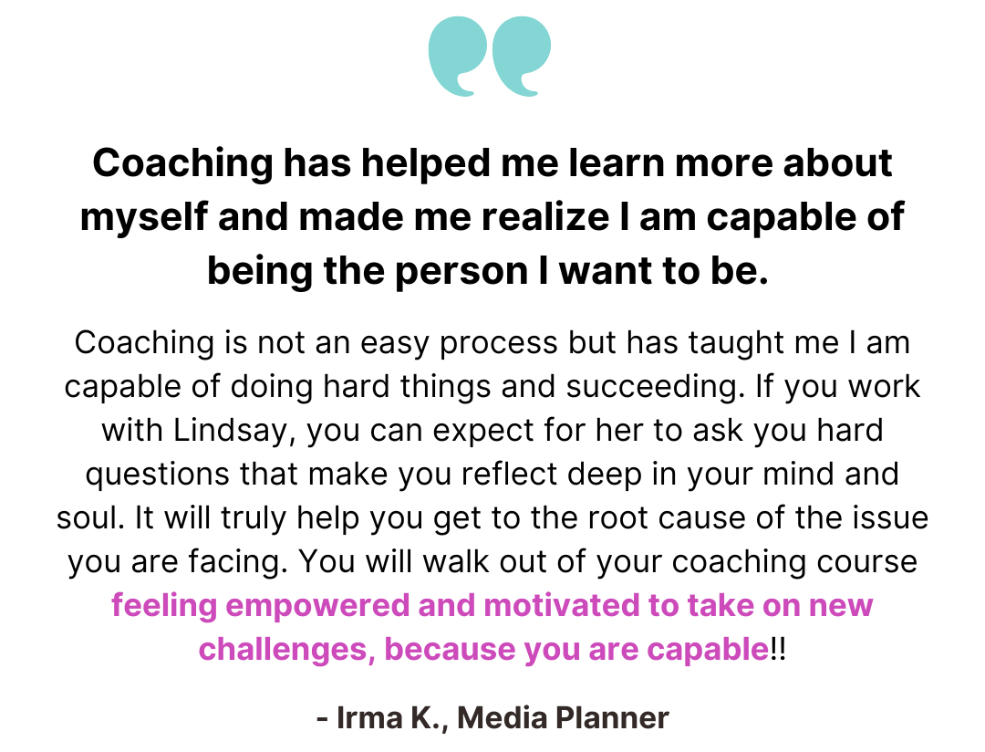 Learn more about your Coach by visiting my website here - Lindsay Benitez